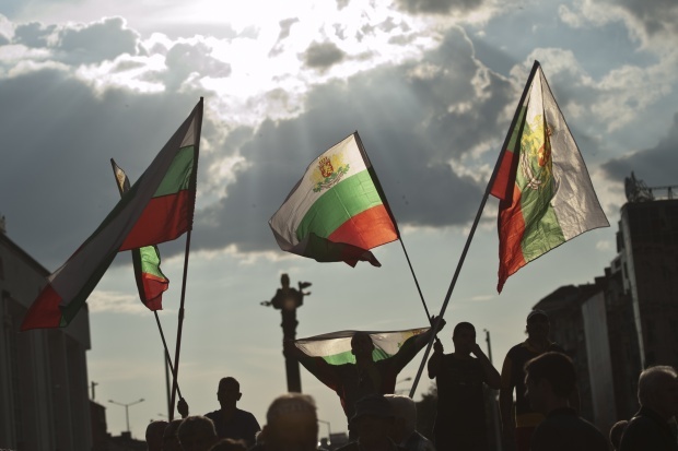 Демонстранты принесли с собой плакаты с надписями „Новая Конституция“, „Независимая Болгария над русскими интересами, над олигархией“.